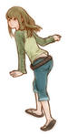 原寸が8400*4200などという気の触れたサイズですが、そんなことはまったく感じさせない作りです。サイズにもこのポウジングにも全く意味なし。階段を上りながら手すりに手をついて、反対の手で醤油のありかを指差しているところ、かもしれません。縁取ったり、薄くてもハイライトを入れるようにしてみました。技法もデッサンも安定しないなあ…。